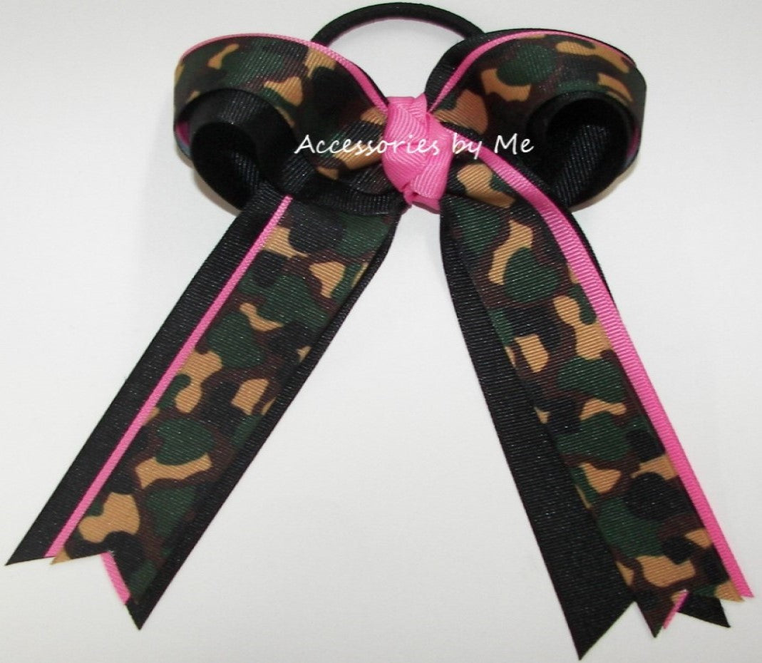 Camouflage Hot Pink Black Ponytail Bow