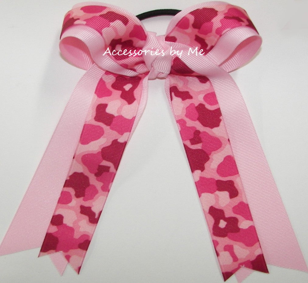 Bow 5.5" wide with 3.5" long Tails attached to a Ponytail Holder Elastic