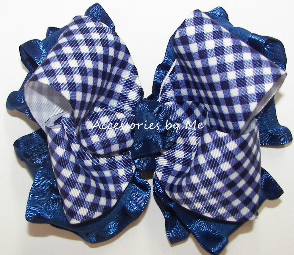 Home > Gingham Collection > Navy Blue Plaid Ruffle Hair Bow
