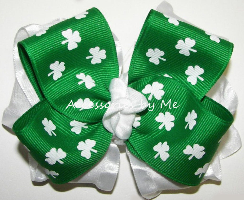St. Patrick's Day Shamrock Ruffle Hair Bow